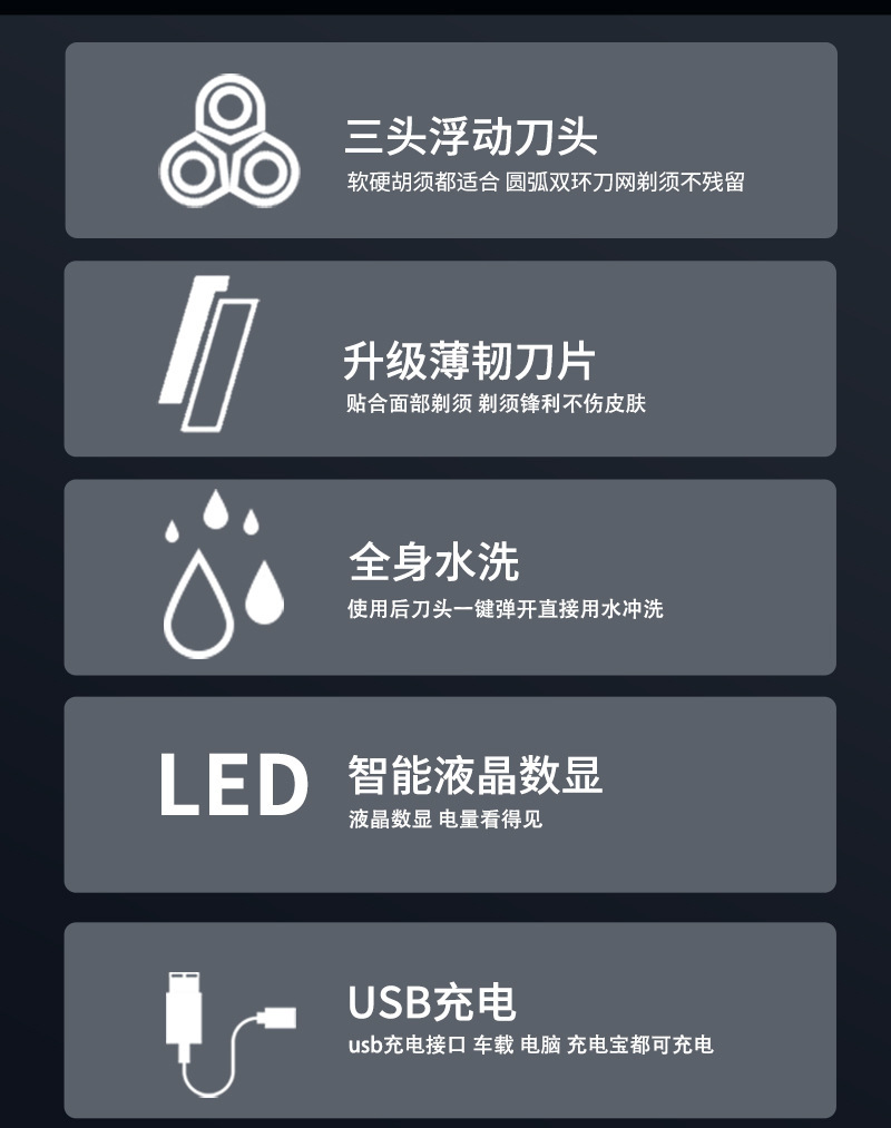 Cross-Border Best-Selling Men's Smart Full-Body Washable Shaving Razor, Portable Multi-Functional Floating Razor