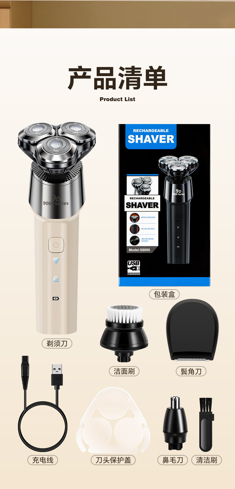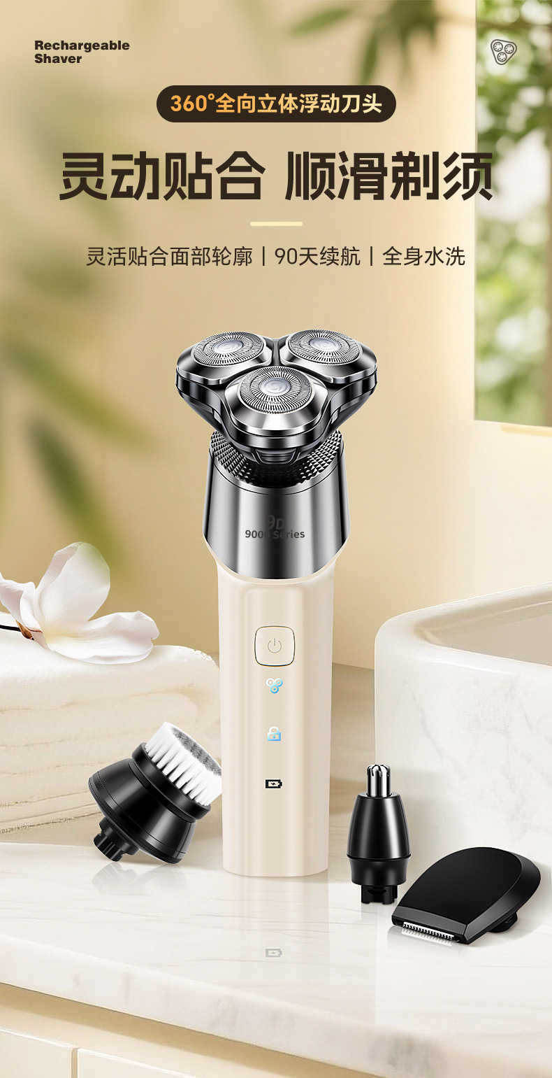 Cross-Border Floating Electric Shaver, Men's Multi-Functional Three-Head Razor, Beard Knife, Full-Body Washing Wholesale