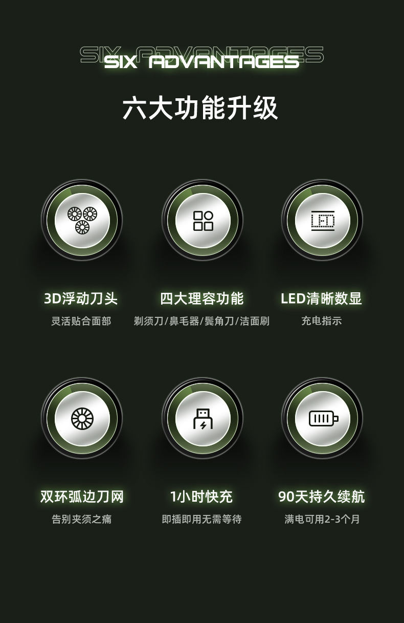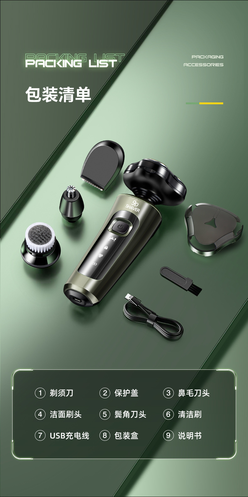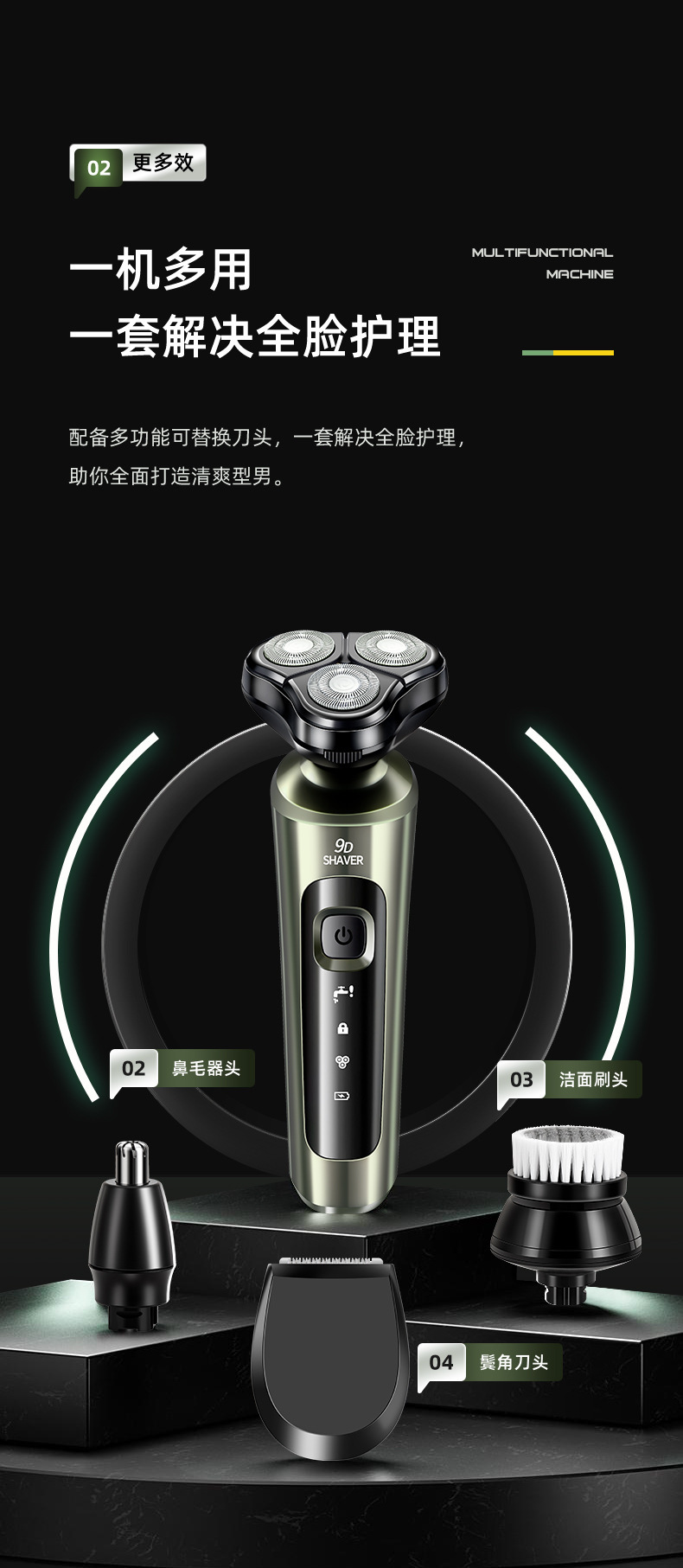 Cross-Border Floating Shaver, Men's Razor, Multi-Functional Rechargeable Full-Body Washing Electric Beard Knife, 9D Wholesale