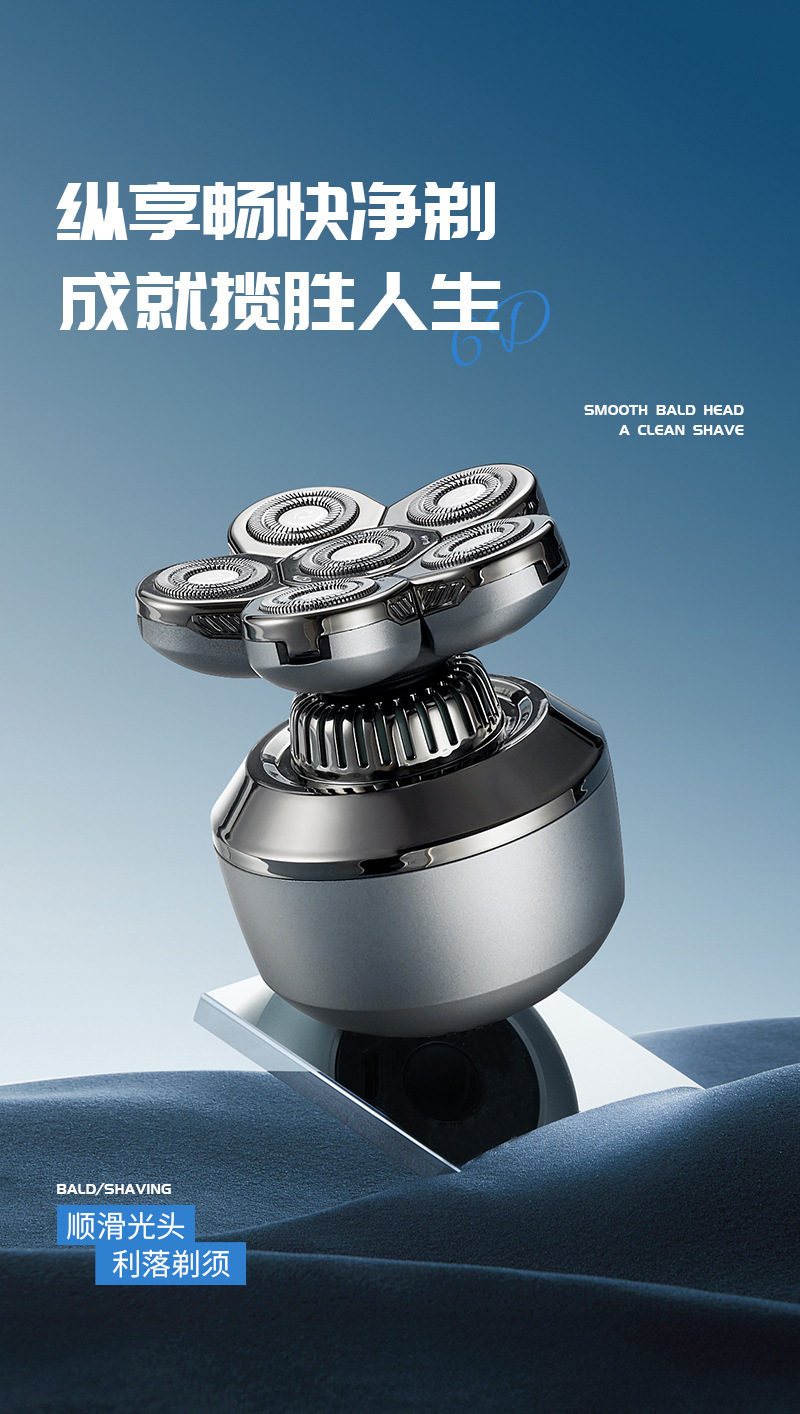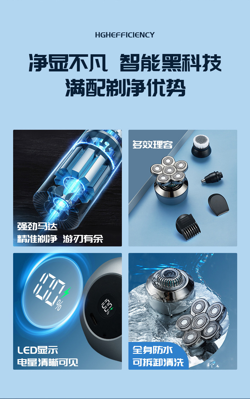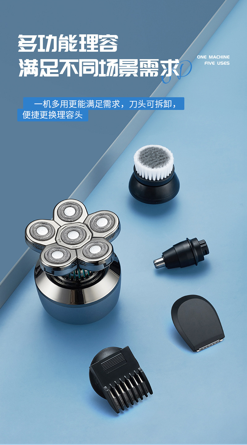 Cross-Border Six-Head Shaving Magic Tool, Men's Household Electric Hair Dresser, Multi-Functional Shaver, Intelligent Digital Display