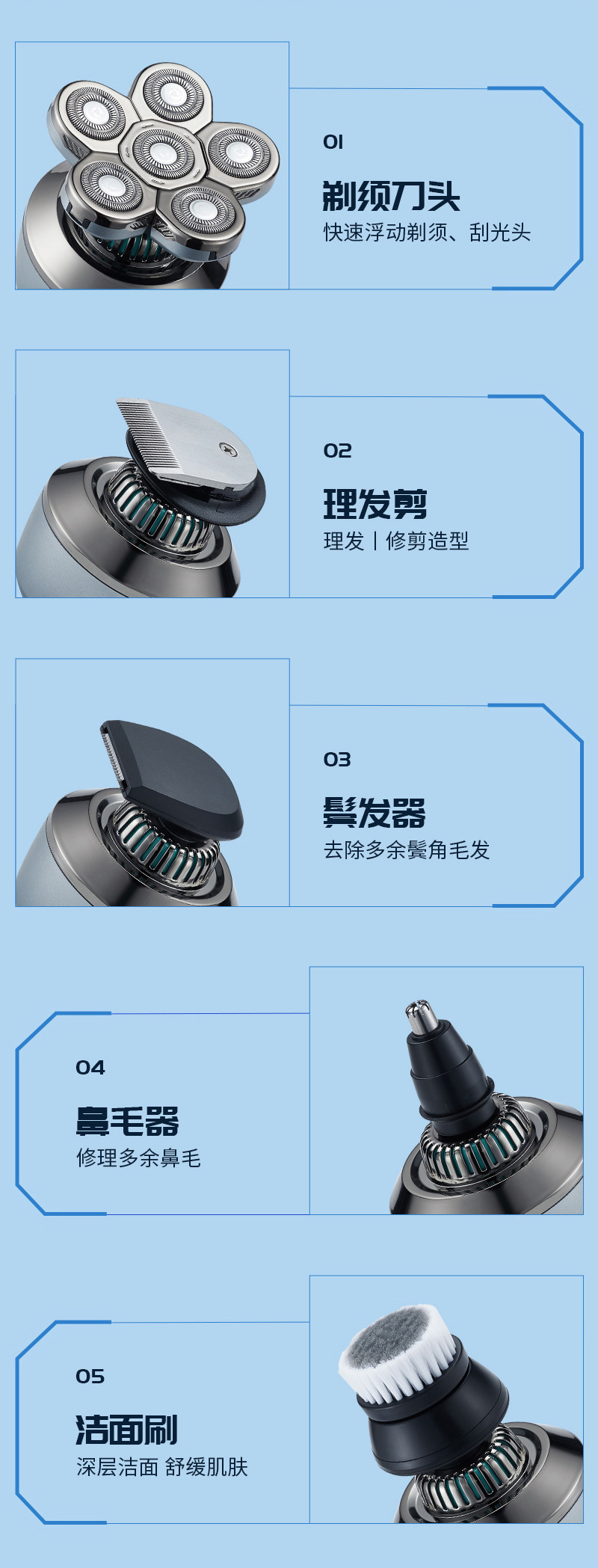 6100 Technology Silver Three-in-One | 6100 Technology Silver Five-in-One | 6100 Technology Silver Four-in-One | 6100 Technology Silver Standard Edition | 6. Standard grey blade tips + nose hair tips