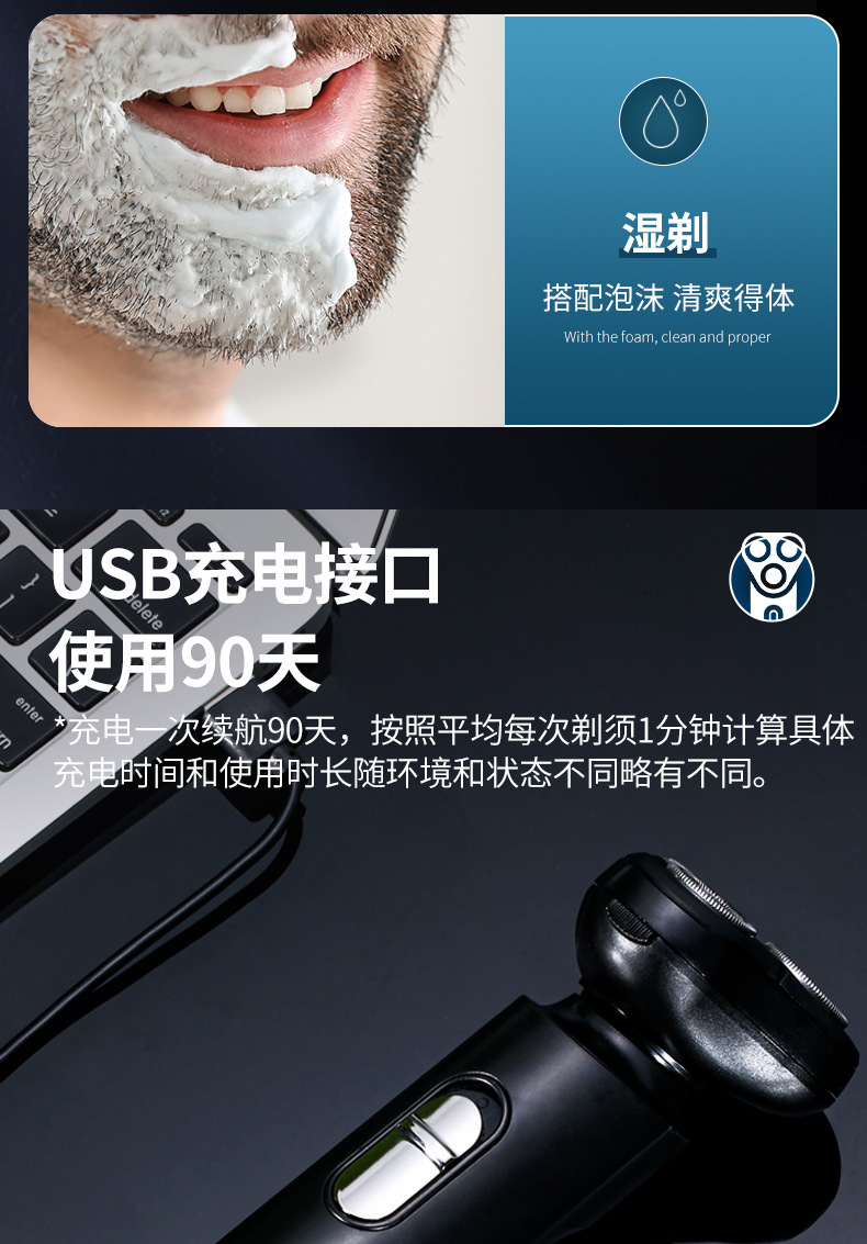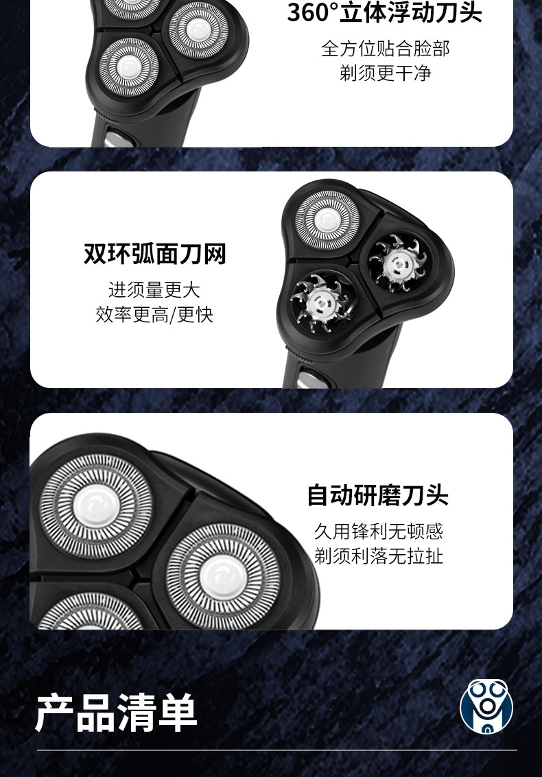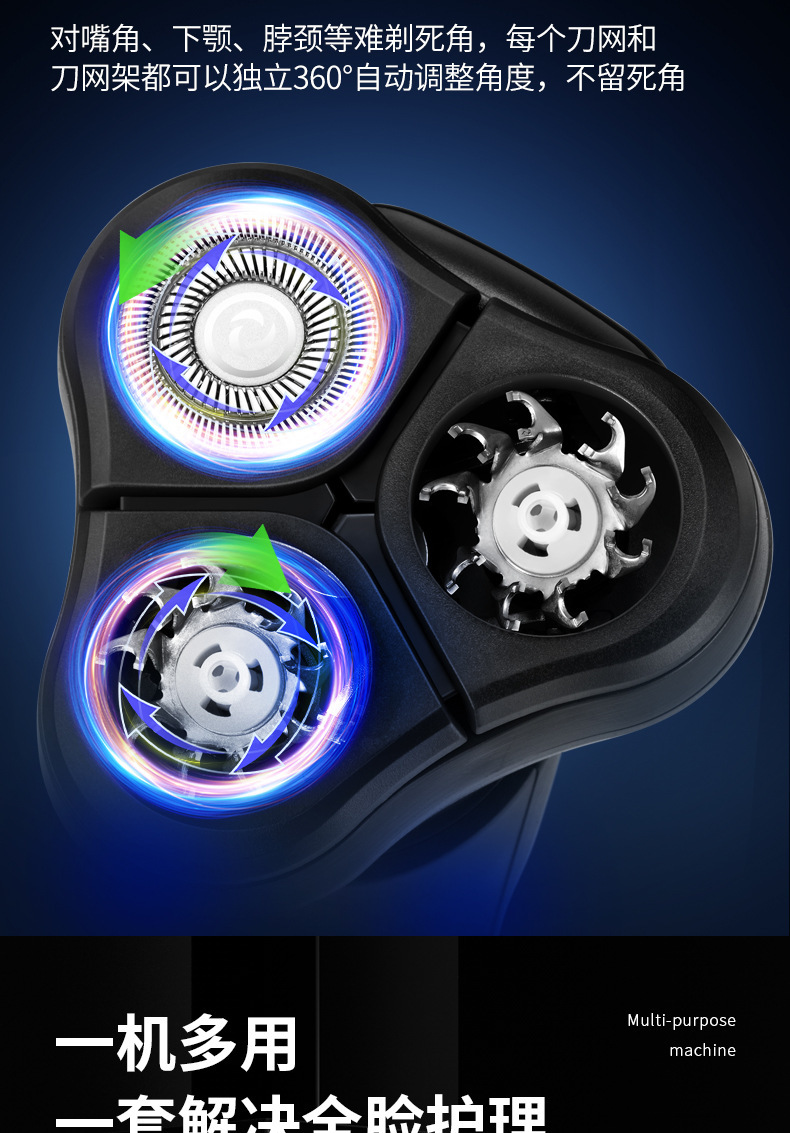 Wholesale Of Cross-Border Electric Shavers, Men's Razors, Rechargeable Three-Head Full-Body Washable Beard Razors